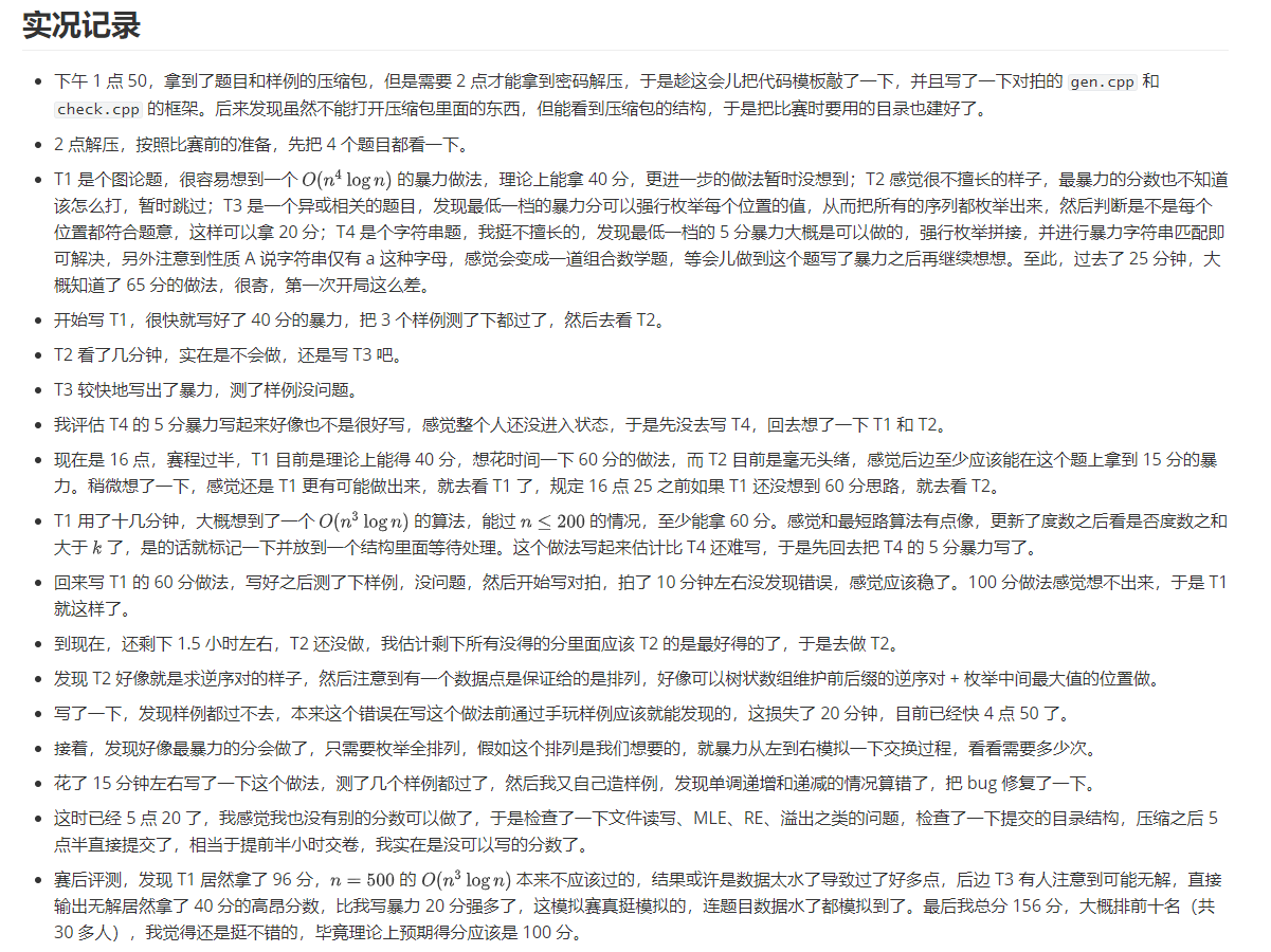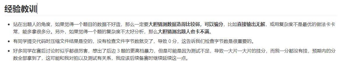 考前这些天,你需要去记录近期训练和模拟赛时自己的失误、应该复习的旧知识和技巧和学到的新东西,下面我会放两个例子,展示一下具体怎么做这个事情: